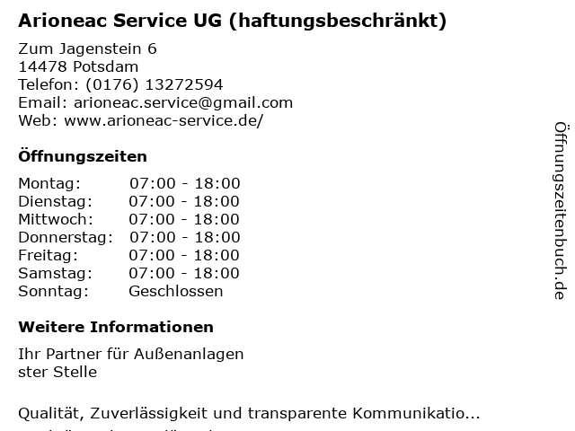 Branchen & Suchbegriffe zu Arioneac Service UG (haftungsbeschränkt):(haftungsbeschränkt), arioneac, außenreinigung, baumfällungen, baumpflege, fensterreinigung, gartenarbeiten, gartenbau, gartenpflege, gartenservice, gebäudereinigung, grünanlagenpflege, haftungsbeschränkt, hausmeisterservice, hochdruckreinigungen, pflaster, pflasterarbeiten, platten, rasenpflege, rollrasen, service, terrassenbau, treppenhausreinigung, ug, winterdienste, zaunbau |