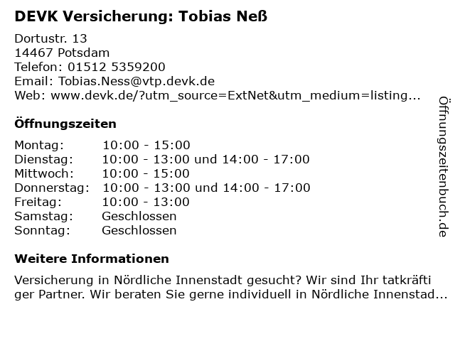 Branchen & Suchbegriffe zu DEVK Versicherung: Tobias Neß:altersvorsorge, autoversicherung, berufsunfähigkeitsversicherung, devk, gebäude- und hausratsversicherung, gewerbeversicherung, kfz-versicherung (motorrad), lebensversicherung, mietrechtsschutzversicherung, neß, reiseversicherungsagentur, tobias, versicherung |