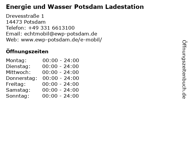 Öffnungszeiten Energie und Wasser Potsdam Ladestation in Potsdam anzeigen