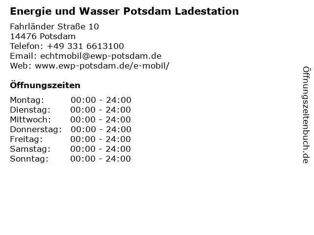Öffnungszeiten Energie und Wasser Potsdam Ladestation in Potsdam anzeigen
