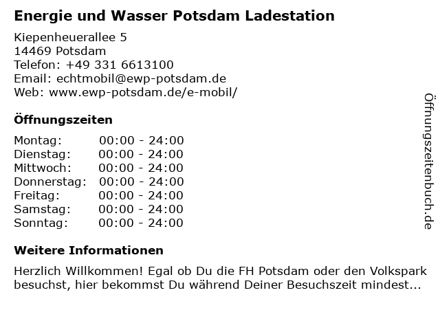 2 Energie und Wasser Potsdam Ladestation (Entfernung: 0,97 km) Friedrich-Ebert-Straße 39, 14469 Potsdam 4 6 |