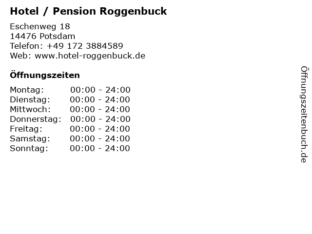 | Öffnungszeiten Hotel / Pension Roggenbuck in Potsdam anzeigen | |