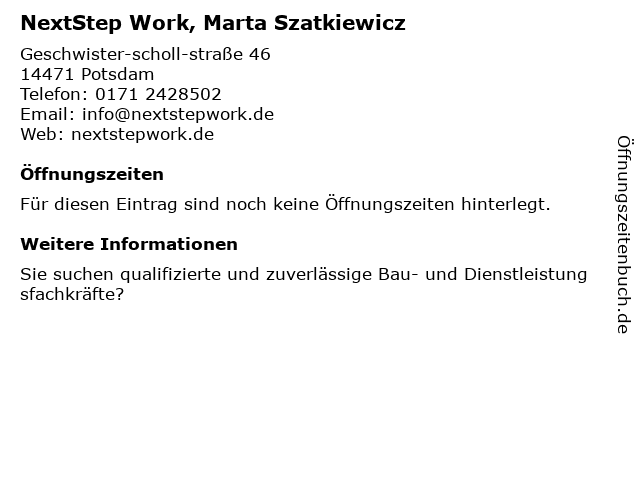 | NextStep Work, Marta Szatkiewicz anrufen | |