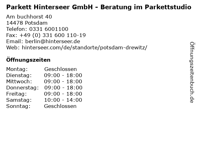 2 Parkett und Bodenverlegung Detlef Meffert (Entfernung: 1,17 km) Käthe-Kollwitz-Str. 15, 14478 Potsdam 4 Kerana GmbH - Fliesenfachmarkt / Fliesenausstellung, Parkett, Laminat, Vinyl (Entfernung: 2,34 km) Wetzlarer Straße 40, 14482 Potsdam 6 |