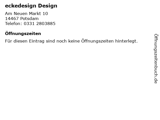 | Öffnungszeiten eckedesign Design in Potsdam anzeigen | |
