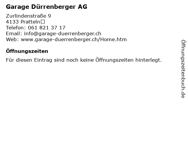 | Öffnungszeiten Garage Dürrenberger AG in Pratteln anzeigen | |