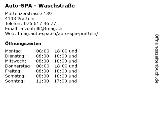 | Öffnungszeiten Auto-SPA - Waschstraße in Pratteln anzeigen | |