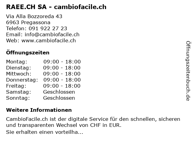 Branchen & Suchbegriffe zu RAEE.CH SA - cambiofacile.ch:cambiofacile.ch, geldtransfer, metallarbeiten, raee.ch, sa |