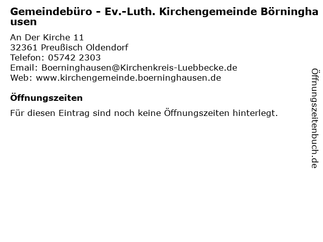 | Gemeindebüro - Ev.-Luth. Kirchengemeinde Börninghausen anrufen | |