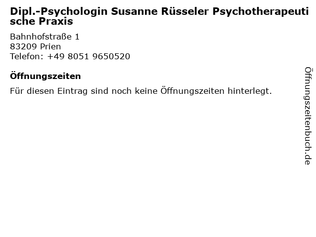 | Dipl.-Psychologin Susanne Rüsseler Psychotherapeutische Praxis anrufen | |