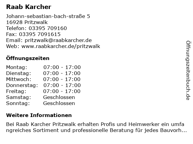 | Öffnungszeiten Raab Karcher in Pritzwalk anzeigen | |