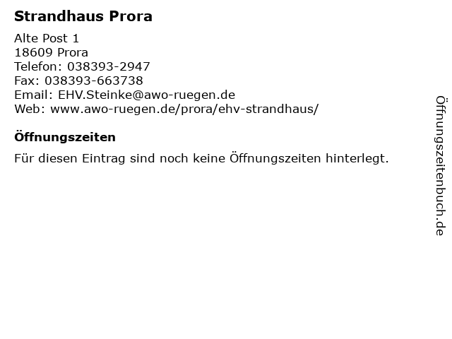 | Öffnungszeiten Strandhaus Prora in Prora anzeigen | |