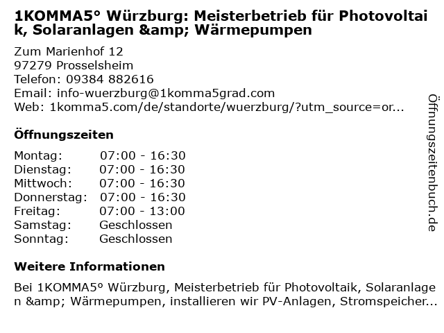Branchen & Suchbegriffe zu 1KOMMA5° Würzburg: Meisterbetrieb für Photovoltaik, Solaranlagen & Wärmepumpen:1komma5°, meisterbetrieb, photovoltaik, solaranlagen, wärmepumpen |