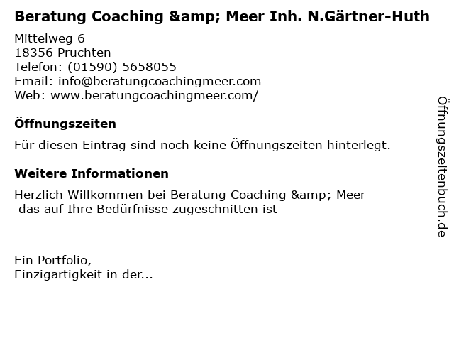 | Beratung Coaching & Meer Inh. N.Gärtner-Huth anrufen | |