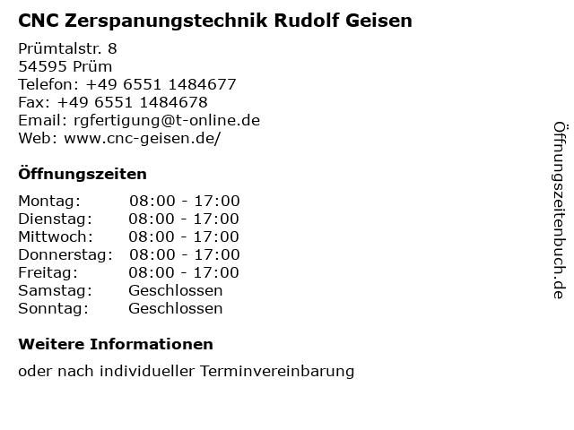 Branchen & Suchbegriffe zu CNC Zerspanungstechnik Rudolf Geisen:anhängervermietung, cnc, dreherei, einzelanfertigungen, frästechnik, geisen, metallbearbeitung, rudolf, zerspanungstechnik |