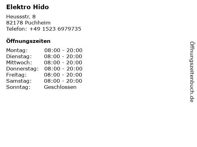 | Öffnungszeiten Elektro Hido in Puchheim anzeigen | |