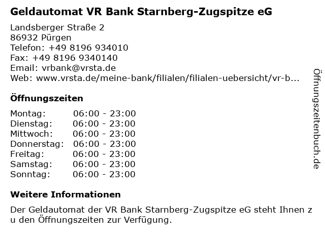 Branchen & Suchbegriffe zu Geldautomat VR Bank Starnberg-Zugspitze eG:bank, bargeld, eg, geldautomat, vr, zugspitze |