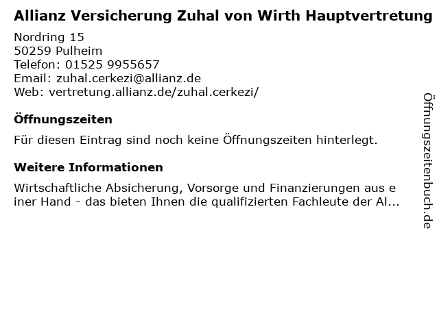 | Allianz Versicherung Zuhal von Wirth Hauptvertretung anrufen | |