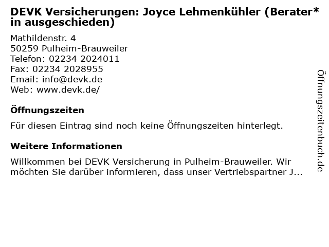 | DEVK Versicherungen: Joyce Lehmenkühler (Berater*in ausgeschieden) anrufen | |
