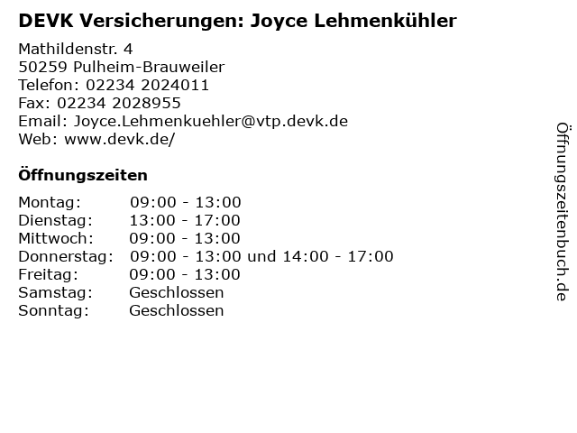 Branchen & Suchbegriffe zu DEVK Versicherungen: Joyce Lehmenkühler:devk, joyce, lehmenkühler, versicherungen |