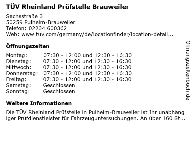Branchen & Suchbegriffe zu TÜV Rheinland Prüfstelle Brauweiler:brauweiler, prüfstelle, rheinland, tüv |