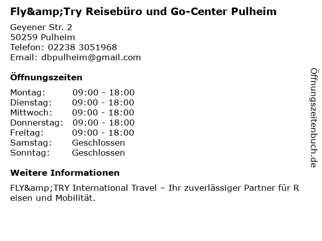 Branchen & Suchbegriffe zu Fly&Try Reisebüro und Go-Center Pulheim:center, fly&try, go, lottoannahmestellen, reisebüro |