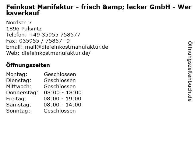 1 POLAR Fischhandelsgesellschaft mbH Feinkost (Entfernung: 5,47 km) Bischofswerdaer Str. 155, 01900 Bretnig-Hauswalde 2 Schiebocker Fleisch-Feinkost-Catering (Entfernung: 14,10 km) Ernst-Thälmann-Straße 3, 01877 Bischofswerda 6 |