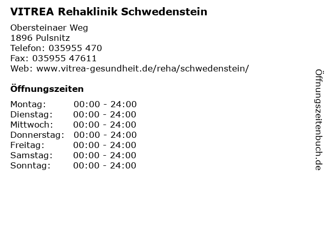 1 Klinik Schwedenstein Klinik für Psychosomatische Medizin (Entfernung: 0,01 km) Obersteinaer Weg 1, 01896 Pulsnitz 4 MVZ an der Rehaklinik Großenhain - Innere Medizin / Pneumologie (Entfernung: 35,47 km) Am Bobersberg 4, 01558 Großenhain 5 MVZ an der Rehaklinik Großenhain - Innere Medizin / Pneumologie (Akutsprechstunde) (Entfernung: 35,47 km) Am Bobersberg 4, 01558 Großenhain 6 MVZ an der Rehaklinik Großenhain - Urologie / Uro-Onkologie (Entfernung: 35,47 km) Am Bobersberg 4, 01558 Großenhain |