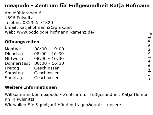 Branchen & Suchbegriffe zu meapodo - Zentrum für Fußgesundheit Katja Hofmann:fußgesundheit, hofmann, katja, meapodo, zentrum |
