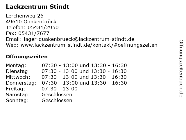 | Öffnungszeiten Lackzentrum Stindt in Quakenbrück anzeigen | |