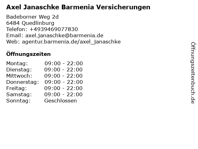 5 Formenbau Gerhard Große und Axel Klinke GbR (Entfernung: 5,81 km) Auf den Steinen 13, 06485 Quedlinburg 6 Axel Ringler Versicherungsmakler Versicherungsmakler (Entfernung: 9,49 km) Bogenstraße 17, 06502 Thale |