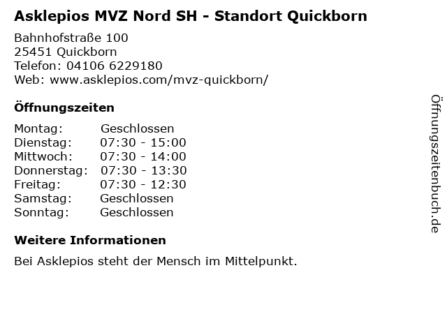 Branchen & Suchbegriffe zu Asklepios MVZ Nord SH - Standort Quickborn:asklepios, mvz, nord, sh, standort |