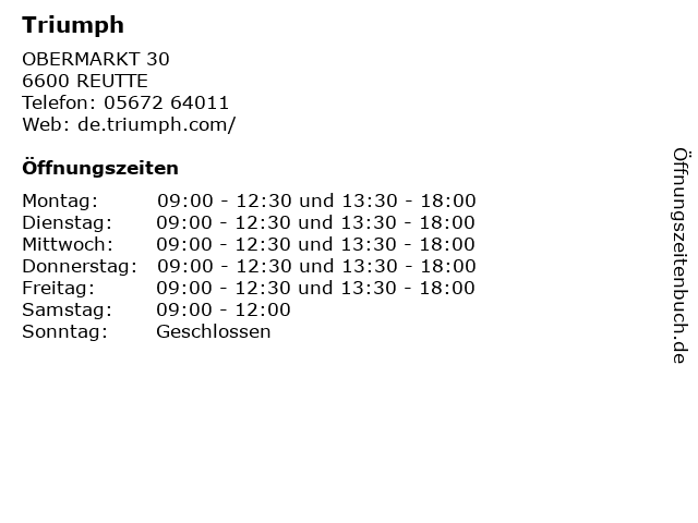 | Öffnungszeiten Triumph in REUTTE anzeigen | |