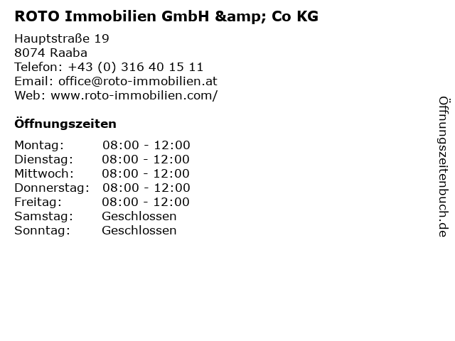 | Öffnungszeiten ROTO Immobilien GmbH & Co KG in Raaba anzeigen | |