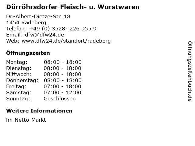 3 Radeberger Fleisch- und Wurstwaren Korch GmbH (Entfernung: 1,34 km) Dresdener Strasse 73 A, 01454 Radeberg 5 Dürrröhrsdorfer Fleisch- und Wurstwaren GmbH (Entfernung: 5,40 km) Zum Hutbergblick 16, 01328 Dresden 6 Dürrröhrsdorfer Fleisch- und Wurstwaren GmbH (Entfernung: 10,43 km) Travemünder Str. 3, 01109 Dresden |