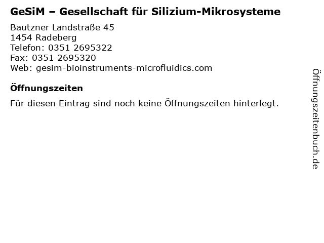 | GeSiM – Gesellschaft für Silizium-Mikrosysteme anrufen | |