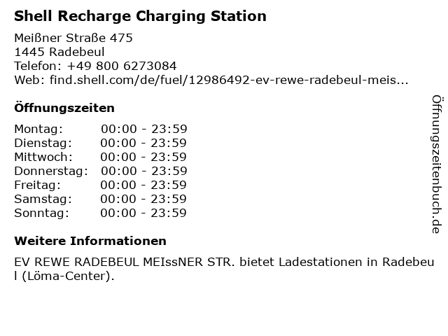 Telefonnummer Shell Recharge Charging Station in Radebeul (+49 800 6273084) anrufen