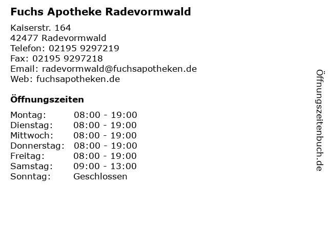 Branchen & Suchbegriffe zu Fuchs Apotheke Radevormwald:apotheke, fuchs |