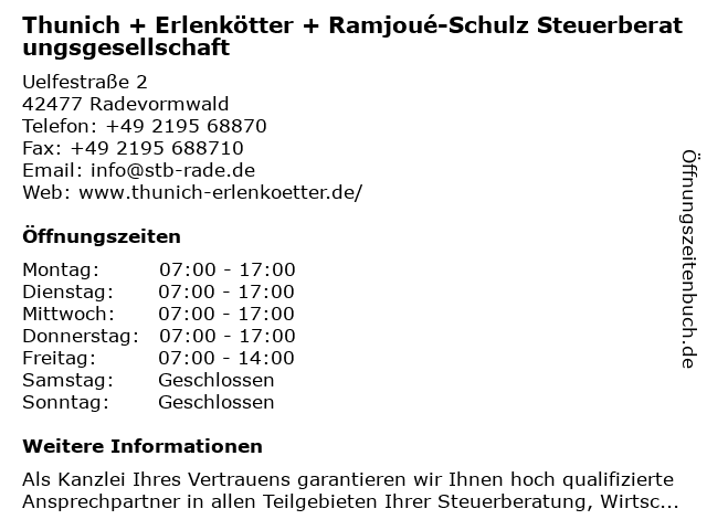 Branchen & Suchbegriffe zu Thunich + Erlenkötter + Ramjoué-Schulz Steuerberatungsgesellschaft:erlenkötter, ramjoué, rechtsanwalt, schulz, steuerberater, steuerberatungsgesellschaft, thunich, wirtschaftsprüfer |