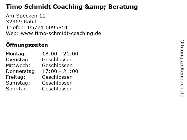 Branchen & Suchbegriffe zu Timo Schmidt Coaching & Beratung:beratung, coaching, schmidt, timo |