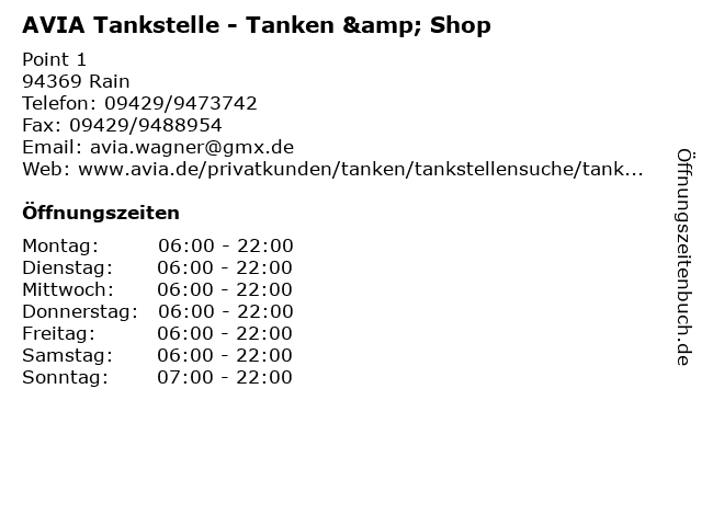| Öffnungszeiten AVIA Tankstelle - Tanken & Shop in Rain anzeigen | |
