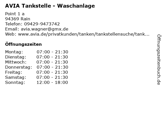| Öffnungszeiten AVIA Tankstelle - Waschanlage in Rain anzeigen | |