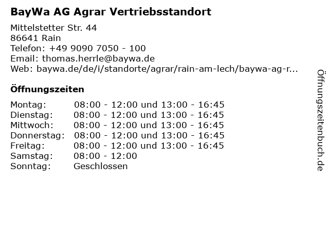 Öffnungszeiten BayWa AG Agrar Vertriebsstandort in Rain anzeigen