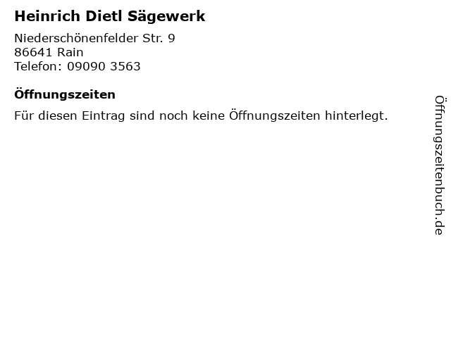 | Öffnungszeiten Heinrich Dietl Sägewerk in Rain anzeigen | |
