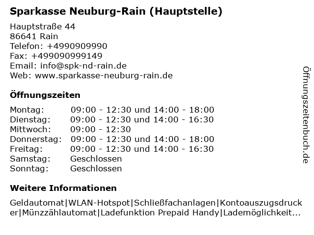 1 Sparkasse Altbayern (Beratungscenter) (Entfernung: 19,84 km) Theresienstraße 186, 86633 Neuburg a. d. Donau 6 |