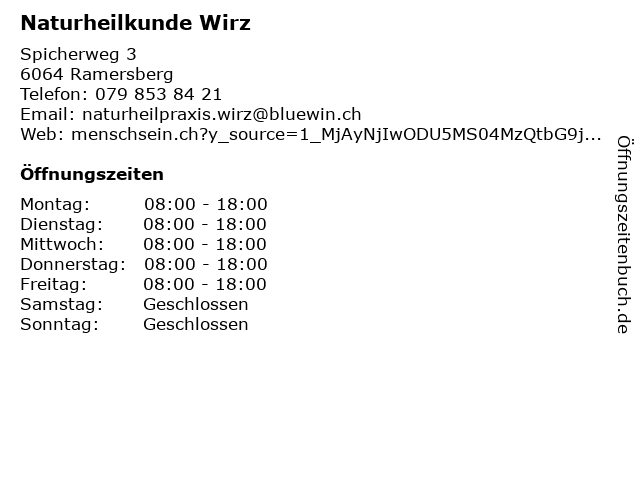 | Öffnungszeiten Naturheilkunde Wirz in Ramersberg anzeigen | |