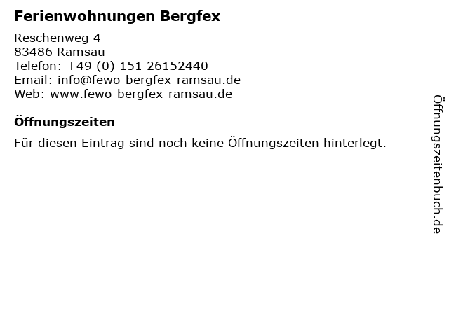 | Öffnungszeiten Ferienwohnungen Bergfex in Ramsau anzeigen | |