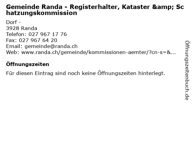 | Gemeinde Randa - Registerhalter, Kataster & Schatzungskommission anrufen | |