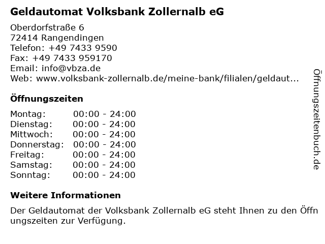 2 Geldautomat Volksbank Zollernalb eG (Entfernung: 6,58 km) Hohenbergstraße 2-4, 72401 Haigerloch (Württ) 3 6 |