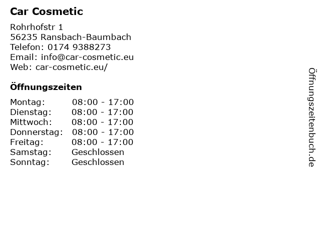 Öffnungszeiten Car Cosmetic in Ransbach-Baumbach anzeigen | |